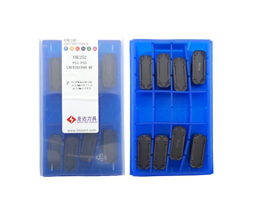 Твердосплавная сменная пластина LNUX301940-RF-YBC252 бренда Sant применяется для черновой обработки заготовок из стали.