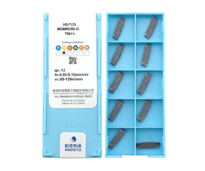 Твердосплавная сменная пластина MGMN200-G-HS7125 используется для отрезки и обработки канавок. Тип обрабатываемого материала - нержавеющая сталь. Ширина пластины 2 мм. Радиус при вершине 0,2 мм. Область применения: • Державки отрезные MGEHR/L, MGIVR/L