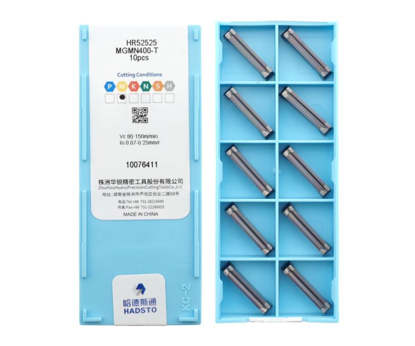 Твердосплавная сменная пластина MGMN400-T-HR52525 используется для отрезки и обработки канавок. Тип обрабатываемого материала - нержавеющая сталь. Ширина пластины 4 мм. Радиус при вершине 0,4 мм. Область применения: • Державки отрезные MGEHR/L, MGIVR/L