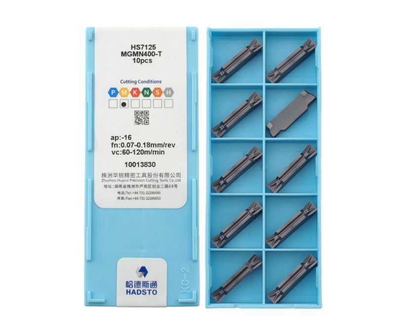 Твердосплавная сменная пластина MGMN400-T-HS7125 используется для отрезки и обработки канавок. Тип обрабатываемого материала - нержавеющая сталь. Ширина пластины 4 мм. Радиус при вершине 0,4 мм. Область применения: • Державки отрезные MGEHR/L, MGIVR/L