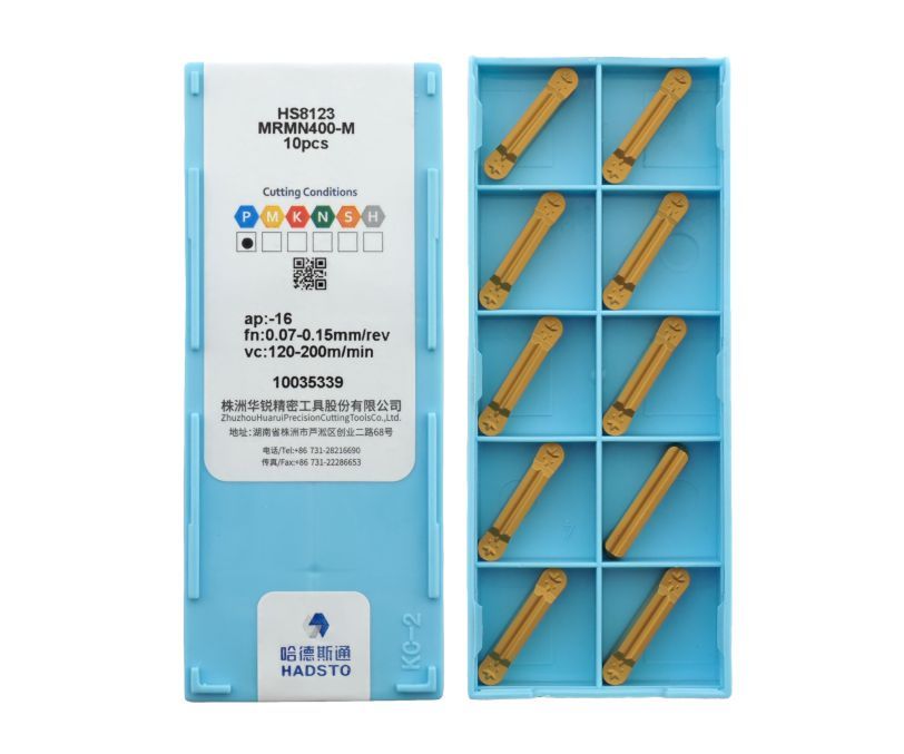 Твердосплавная сменная пластина MRMN400-M-HS8123 используется для отрезки и обработки канавок. Тип обрабатываемого материала - сталь. Ширина пластины 4 мм. Радиус при вершине 2 мм. Область применения: • Державки отрезные MGEHR/L, MGIVR/L