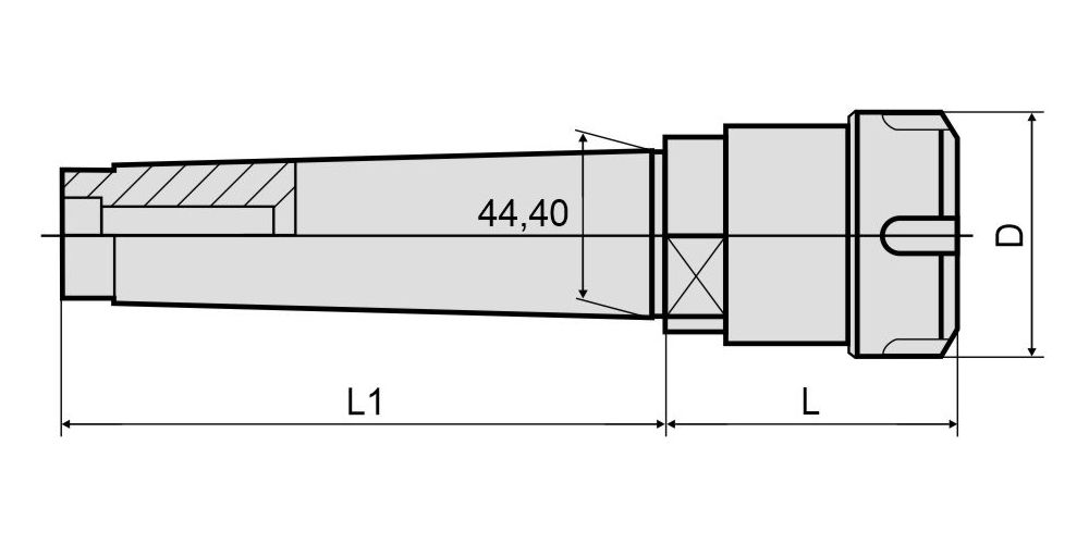 Фрезерный патрон MTB5-ER32 (ISO 296, DIN 228) предназначен для фиксации режущего инструмента с цилиндрическим хвостовиком и используется во фрезерных станках. Установка режущего инструмента в корпус патрона осуществляется при помощи зажимной цанги ER32 (DIN 6499) и гайки типа UM. В зависимости от размера посадочного отверстия цанги в патрон устанавливается сверло с диаметром хвостовика от 2 до 20 мм.