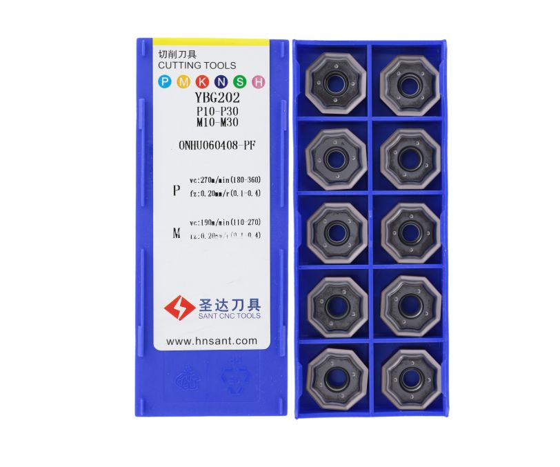 Фрезерная пластина ONHU060408-PF-YBG202 бренда Sant применяется для обработки заготовок из стали, нержавеющей стали и чугуна.