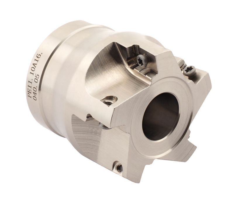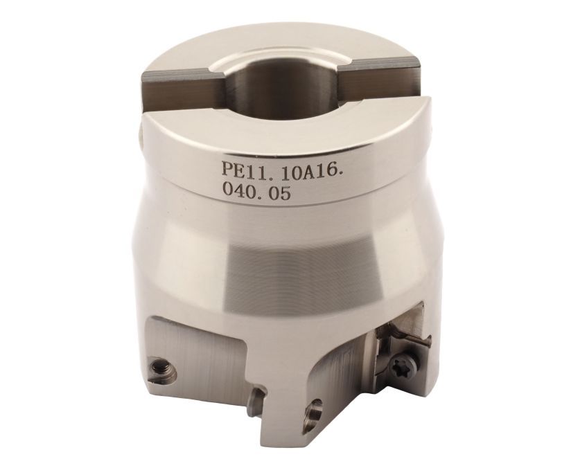 Фреза торцевая насадная с главным углом в плане 90° типа PE11. Рабочий диаметр D 40 мм, посадочный диаметр d 16 мм. Максимальная глубина фрезерования 8 мм. Количество зубьев: 5. Применяемые пластины: APKT1003PDSR..