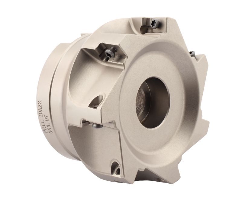 Фреза торцевая насадная с главным углом в плане 90° типа PE11. Рабочий диаметр D 63 мм, посадочный диаметр d 22 мм. Максимальная глубина фрезерования 8 мм. Количество зубьев: 7. Применяемые пластины: APKT1003PDSR..