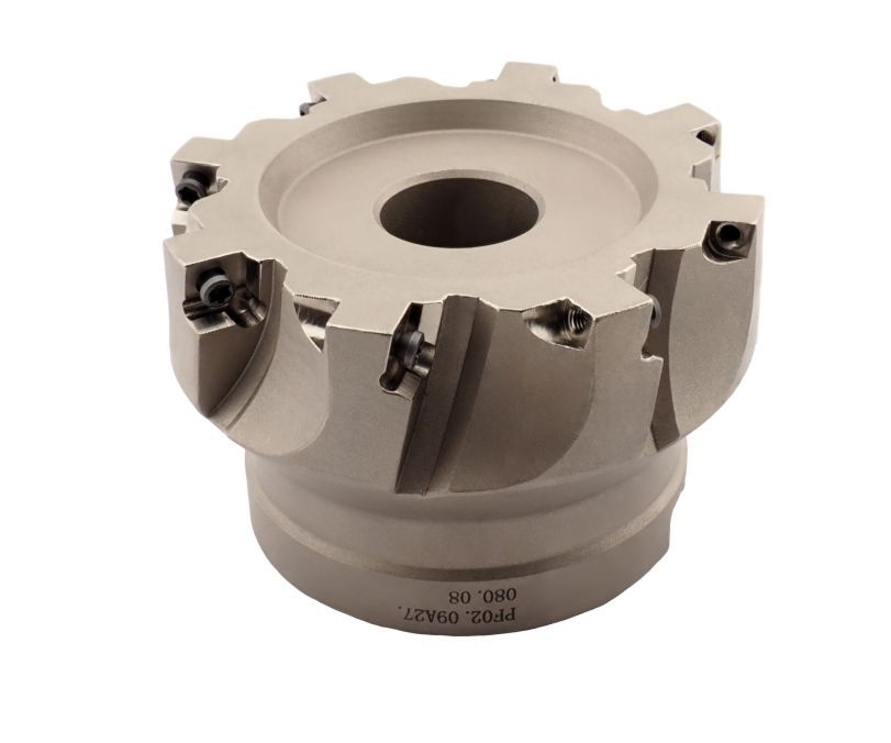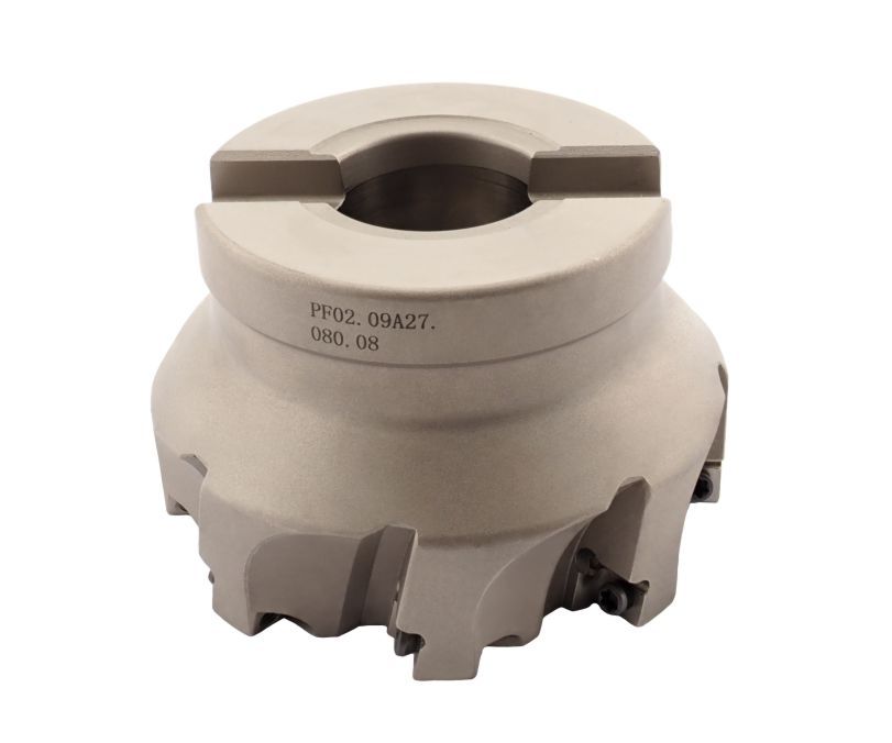 Фреза торцевая насадная с главным углом в плане 90° типа PF02. Рабочий диаметр D 80 мм, посадочный диаметр d 27 мм. Максимальная глубина фрезерования 6,5 мм. Количество зубьев: 8. Применяемые пластины: SEET09T308PER.