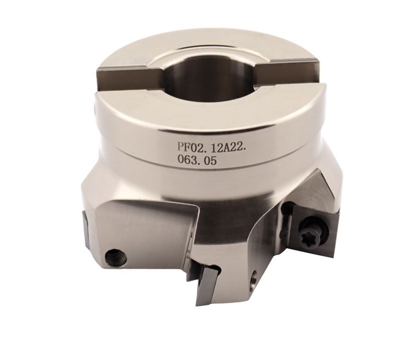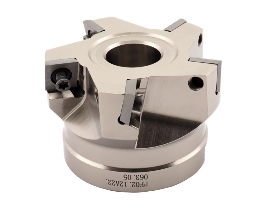 Фреза торцевая насадная с главным углом в плане 90° типа PF02. Рабочий диаметр D 63 мм, посадочный диаметр d 22 мм. Максимальная глубина фрезерования 10,0 мм. Количество зубьев: 5.