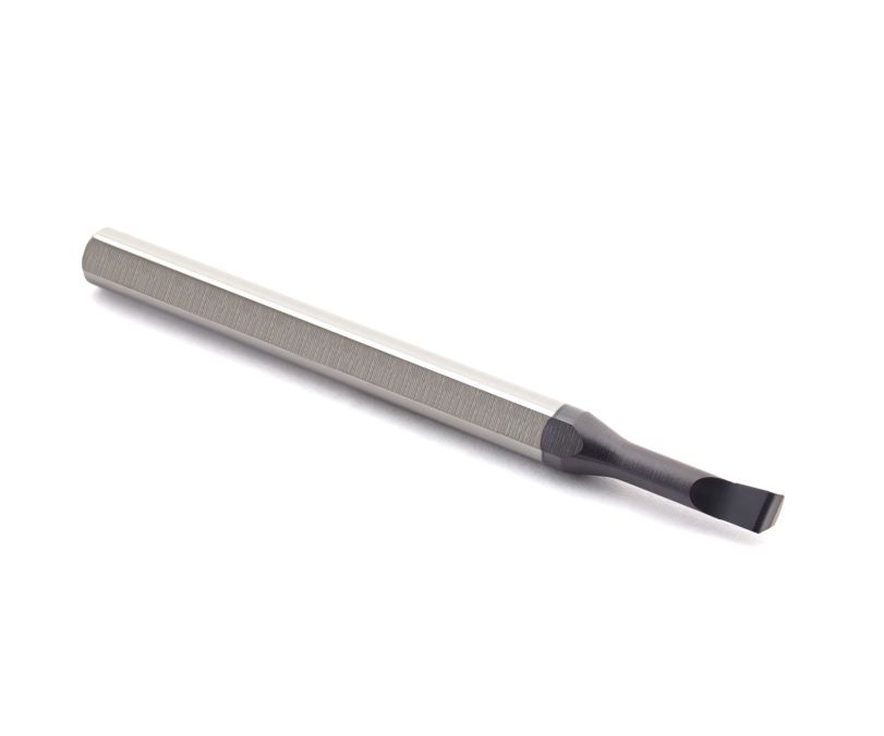 Твердосплавный мини-резец по металлу PSBTR3-10L-R0.05-KTX применяется для продольного растачивания. Тип обрабатываемого материала: сталь, нержавеющая сталь. Минимальный диаметр отверстия 3 мм. Радиус вершины 0,05 мм. Общая длина резца 50 мм. Для увеличения износостойкости инструмента и срока его службы используется защитное покрытие KTX.