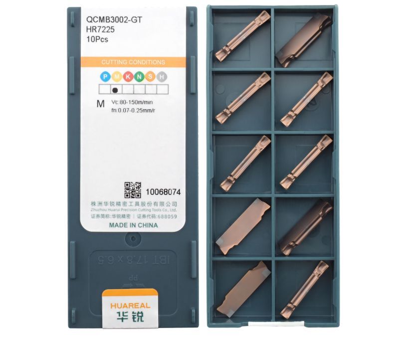 Твердосплавная сменная пластина QCMB3004-CT-HR7225 используется для отрезки и обработки канавок. Тип обрабатываемого материала - нержавеющая сталь. Ширина пластины 3 мм. Радиус при вершине 0,4 мм. Область применения: • Державки отрезные MGEHR/L, MGIVR/L