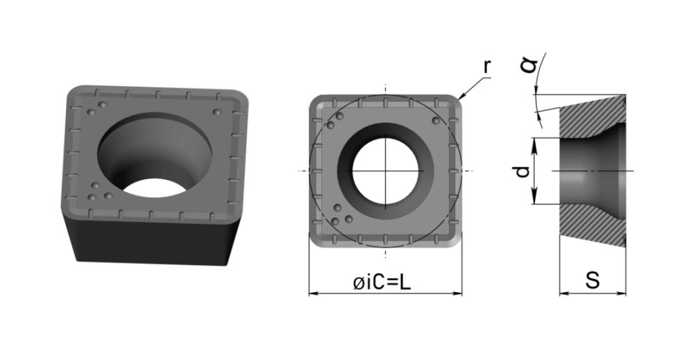 Твердосплавная сменная пластина QCMT 130408-CM используется для сверления отверстий в заготовках из различных материалов. Длина режущей кромки 13.5 мм, задний угол 7°.