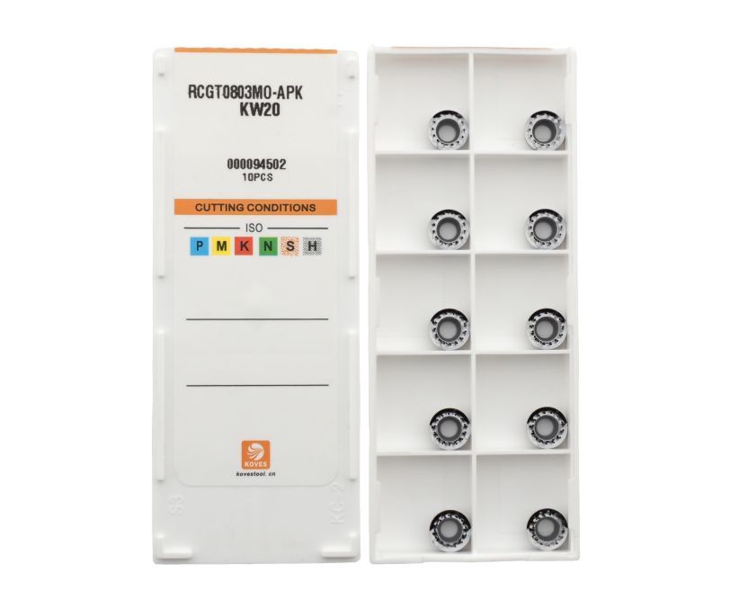 Твердосплавная сменная пластина RCGT0803MO-APK-KW20 бренда Koves применяется для получистовой обработки заготовок из алюминия и сплавов цветных металлов.