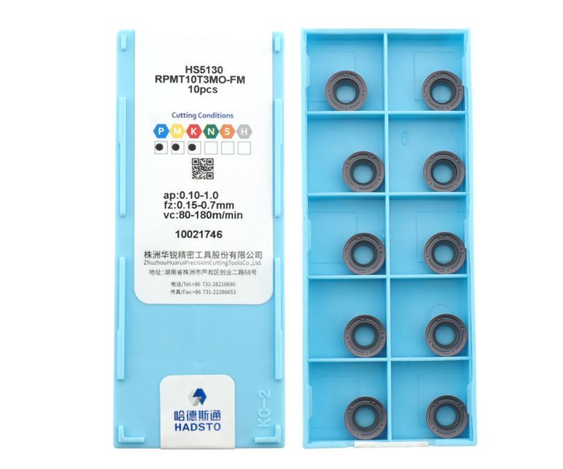 Фрезерная пластина RPMT10T3MO-FM-HS5130 бренда HADSTO применяется для обработки заготовок из стали, нержавеющей стали и чугуна.