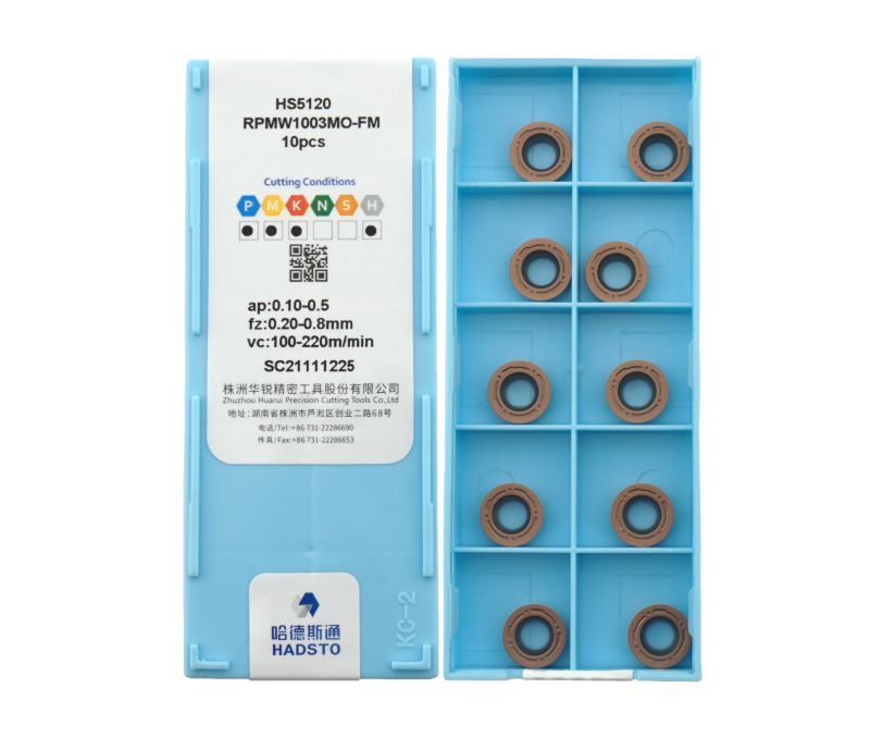 Фрезерная пластина RPMW1003MO-FM-HS5120 бренда HADSTO применяется для обработки заготовок из стали, нержавеющей стали и чугуна.
