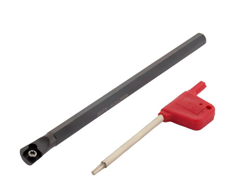Токарный резец (державка) расточной S07K-SCLCR06 фирмы SANT является идеальным инструментом для внутреннего продольного точения и подрезки торца металлических изделий при помощи сменные твердосплавные пластины типа CC..T 0602... Крепление пластины к державке S07K-SCLCR06 осуществляется S - Фиксация винтом. Державка S07K-SCLCR06 типа S выполнена из стали без канала для подачи СОЖ. Сечение резца составляет мм, минимальный диаметр растачивания 9 мм. Длина державки S07K-SCLCR06 равна 125 мм, исполнение: правое.