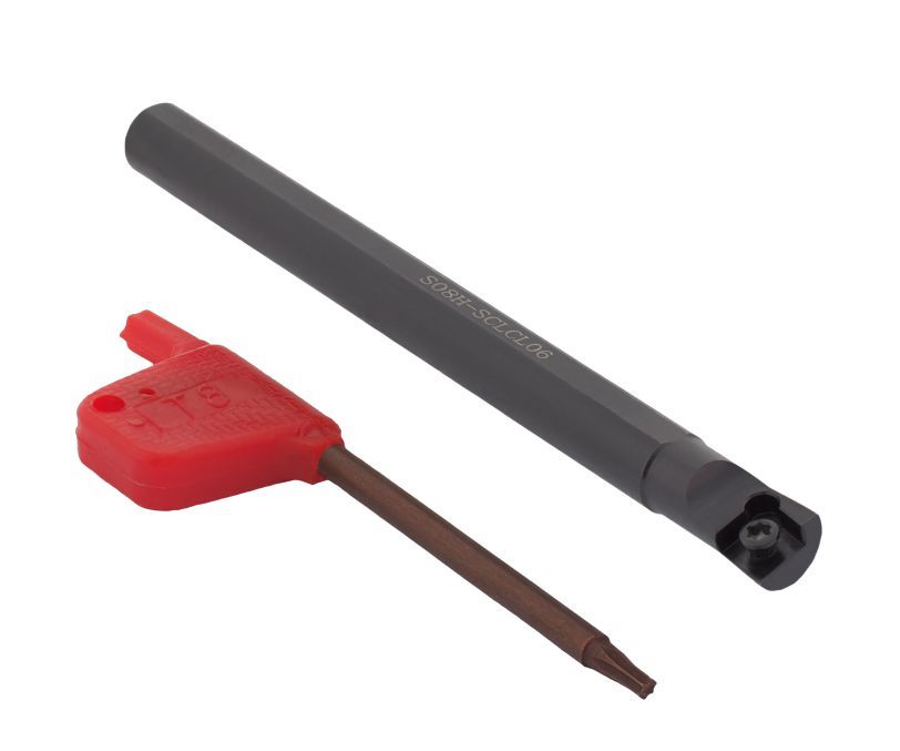 Токарный резец (державка) расточной S08H-SCLCL06 фирмы SANT является идеальным инструментом для внутреннего продольного точения и подрезки торца металлических изделий при помощи сменные твердосплавные пластины типа CC..T 0602... Крепление пластины к державке S08H-SCLCL06 осуществляется S - Фиксация винтом. Державка S08H-SCLCL06 типа S выполнена из стали без канала для подачи СОЖ. Сечение резца составляет 8 мм, минимальный диаметр растачивания 10 мм. Длина державки S08H-SCLCL06 равна 100 мм, исполнение: левое.