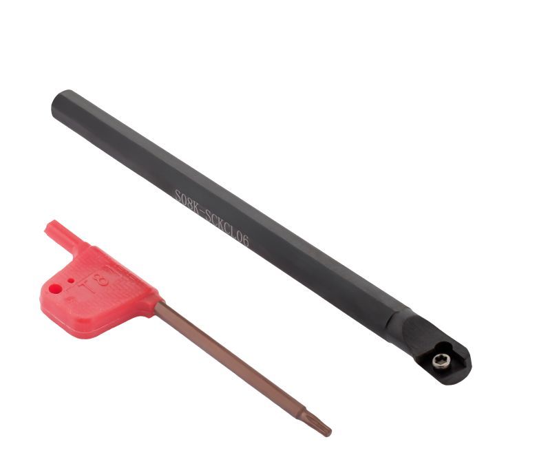 Токарный резец (державка) расточной S08K-SCKCL06 фирмы SANT является идеальным инструментом для внутреннего продольного точения и подрезки торца металлических изделий при помощи сменные твердосплавные пластины типа CC..T 0602... Крепление пластины к державке S08K-SCKCL06 осуществляется S - Фиксация винтом. Державка S08K-SCKCL06 типа S выполнена из стали без канала для подачи СОЖ. Сечение резца составляет 8 мм, минимальный диаметр растачивания 10 мм. Длина державки S08K-SCKCL06 равна 125 мм, исполнение: левое.