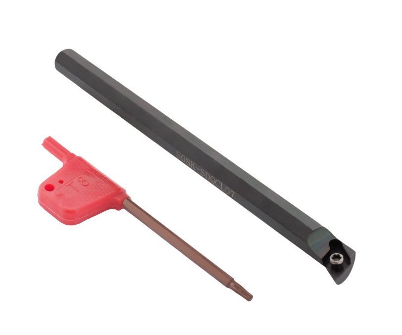 Токарный резец (державка) расточной S08K-SDQCL07 фирмы SANT является идеальным инструментом для внутреннего продольного точения и подрезки торца металлических изделий при помощи сменные твердосплавные пластины типа DC..T 0702... Крепление пластины к державке S08K-SDQCL07 осуществляется S - Фиксация винтом. Державка S08K-SDQCL07 типа S выполнена из стали без канала для подачи СОЖ. Сечение резца составляет 8 мм, минимальный диаметр растачивания 10 мм. Длина державки S08K-SDQCL07 равна 125 мм, исполнение: левое.
