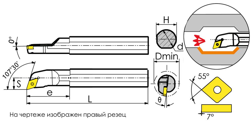 S10K-SDQCR07 Резец токарный (державка) расточной по металлу