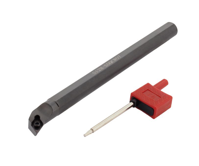 Токарный резец (державка) расточной S12M-SDQCR07 фирмы SANT является идеальным инструментом для внутреннего продольного точения и подрезки торца металлических изделий при помощи сменные твердосплавные пластины типа DC..T 0702... Крепление пластины к державке S12M-SDQCR07 осуществляется S - Фиксация винтом. Державка S12M-SDQCR07 типа S выполнена из стали без канала для подачи СОЖ. Сечение резца составляет 12 мм, минимальный диаметр растачивания 16 мм. Длина державки S12M-SDQCR07 равна 150 мм, исполнение: правое.