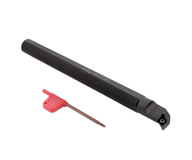Токарный резец (державка) расточной S16Q-SDUCL07 фирмы SANT является идеальным инструментом для внутреннего продольного точения и подрезки торца металлических изделий при помощи сменные твердосплавные пластины типа DC..T 0702... Крепление пластины к державке S16Q-SDUCL07 осуществляется S - Фиксация винтом. Державка S16Q-SDUCL07 типа S выполнена из стали без канала для подачи СОЖ. Сечение резца составляет 16 мм, минимальный диаметр растачивания 20 мм. Длина державки S16Q-SDUCL07 равна 180 мм, исполнение: левое.