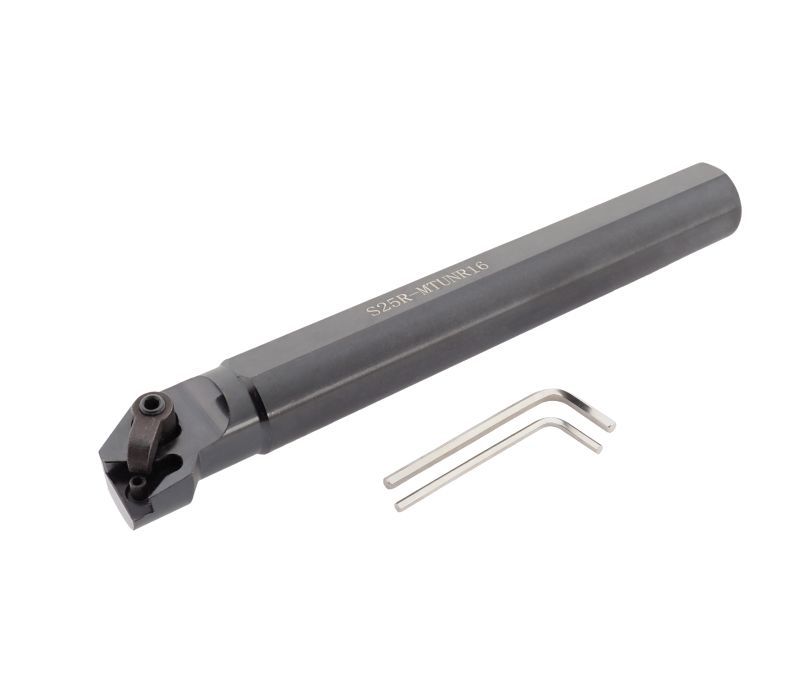 Токарный резец (державка) расточной S25R-MTUNR16 фирмы SANT является идеальным инструментом для внутреннего продольного точения и подрезки торца металлических изделий при помощи сменные твердосплавные пластины типа TN.. 1604... Крепление пластины к державке S25R-MTUNR16 осуществляется прижимом клин-прихватом сверху. Державка S25R-MTUNR16 типа S выполнена из стали без канала для подачи СОЖ. Сечение резца составляет 25 мм, минимальный диаметр растачивания 32 мм. Длина державки S25R-MTUNR16 равна 200 мм, исполнение: правое.