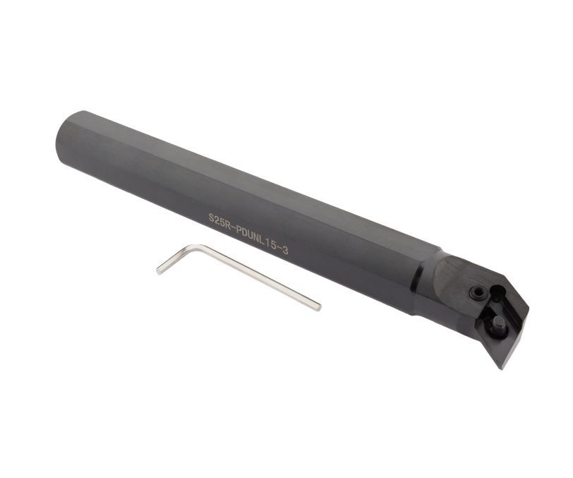 Токарный резец (державка) расточной S25R-PDUNL15-3 фирмы SANT является идеальным инструментом для внутреннего продольного точения и подрезки торца металлических изделий при помощи сменные твердосплавные пластины типа DN.. 1504... Крепление пластины к державке S25R-PDUNL15-3 осуществляется прижимом рычагом через отверстие. Державка S25R-PDUNL15-3 типа S выполнена из стали без канала для подачи СОЖ. Сечение резца составляет 25 мм, минимальный диаметр растачивания 32 мм. Длина державки S25R-PDUNL15-3 равна 250 мм, исполнение: левое.