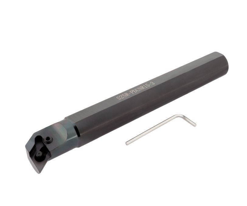 Токарный резец (державка) расточной S25R-PDUNR15-3 фирмы SANT является идеальным инструментом для внутреннего продольного точения и подрезки торца металлических изделий при помощи сменные твердосплавные пластины типа DN.. 1504... Крепление пластины к державке S25R-PDUNR15-3 осуществляется прижимом рычагом через отверстие. Державка S25R-PDUNR15-3 типа S выполнена из стали без канала для подачи СОЖ. Сечение резца составляет 25 мм, минимальный диаметр растачивания 32 мм. Длина державки S25R-PDUNR15-3 равна 250 мм, исполнение: правое.