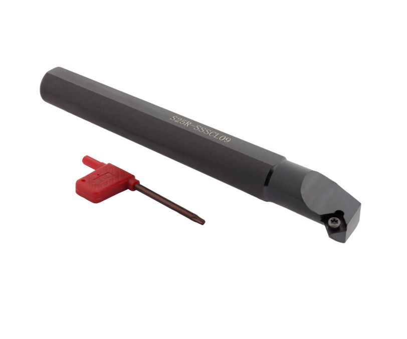 Токарный резец (державка) расточной S25R-SSSCL09 фирмы SANT является идеальным инструментом для внутреннего продольного точения и подрезки торца металлических изделий при помощи сменные твердосплавные пластины типа SC..T 09T3... Крепление пластины к державке S25R-SSSCL09 осуществляется S - Фиксация винтом. Державка S25R-SSSCL09 типа S выполнена из стали без канала для подачи СОЖ. Сечение резца составляет 25 мм, минимальный диаметр растачивания 32 мм. Длина державки S25R-SSSCL09 равна 200 мм, исполнение: левое.