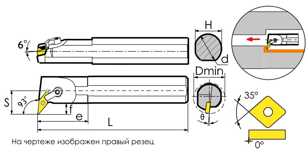 Обозначение расточного резца: