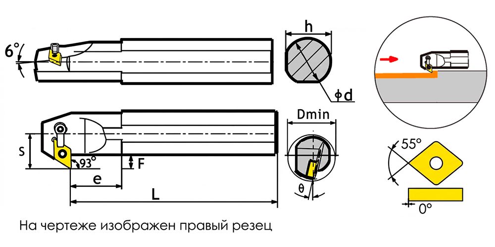 Державка токарная S40T-MDZNR1504 предназначена для внутреннего продольного точения с использованием твердосплавных пластин. Исполнение S: стальной хвостовик диаметром 40 мм без канала для подачи СОЖ. Тип применяемых пластин / крепление: DN.. 1504.. / M - Прижим клин-прихватом сверху. Длина державки: 300 (T) мм, исполнение: R (правое).