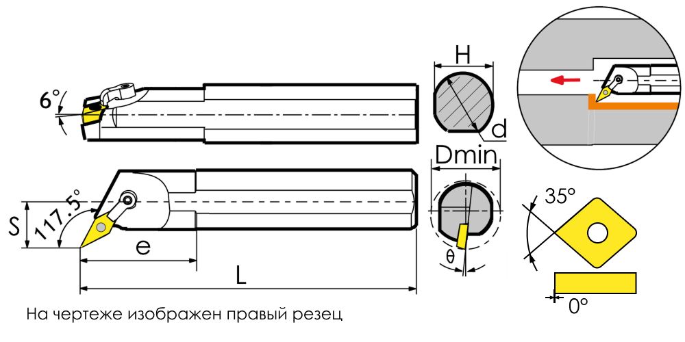 Обозначение расточного резца: