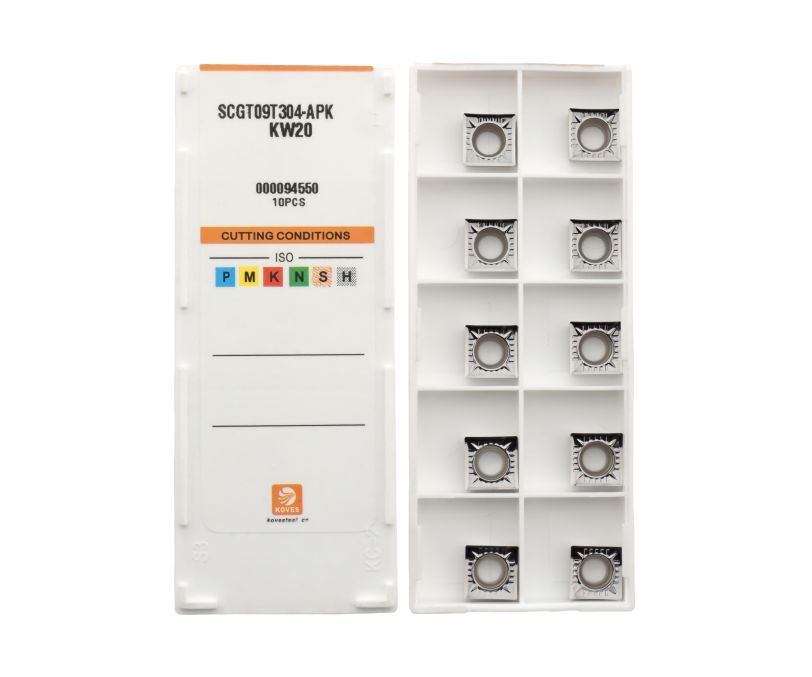 Твердосплавная сменная пластина SCGT09T304-APK-KW20 бренда Koves применяется для получистовой обработки заготовок из алюминия и сплавов цветных металлов.