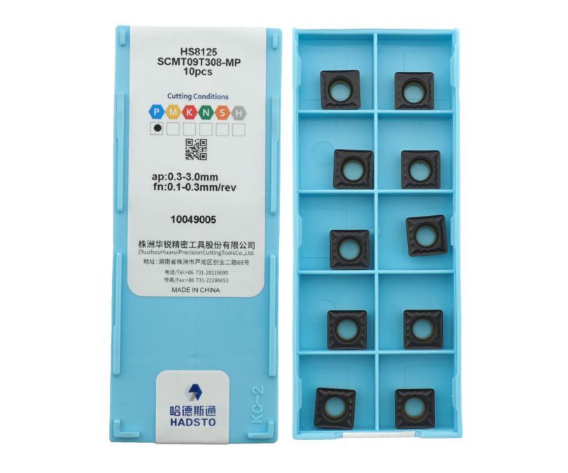 Твердосплавная сменная пластина SCMT09T308-MP-HS8125 бренда HADSTO применяется для чистовой обработки заготовок из стали.