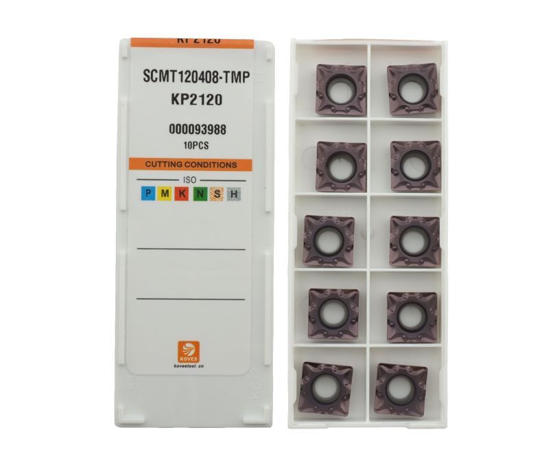 Твердосплавная сменная пластина SCMT120408-TMP-KP2120 бренда Koves применяется для получистовой обработки заготовок из стали, нержавеющей стали и жаропрочных сплавов.