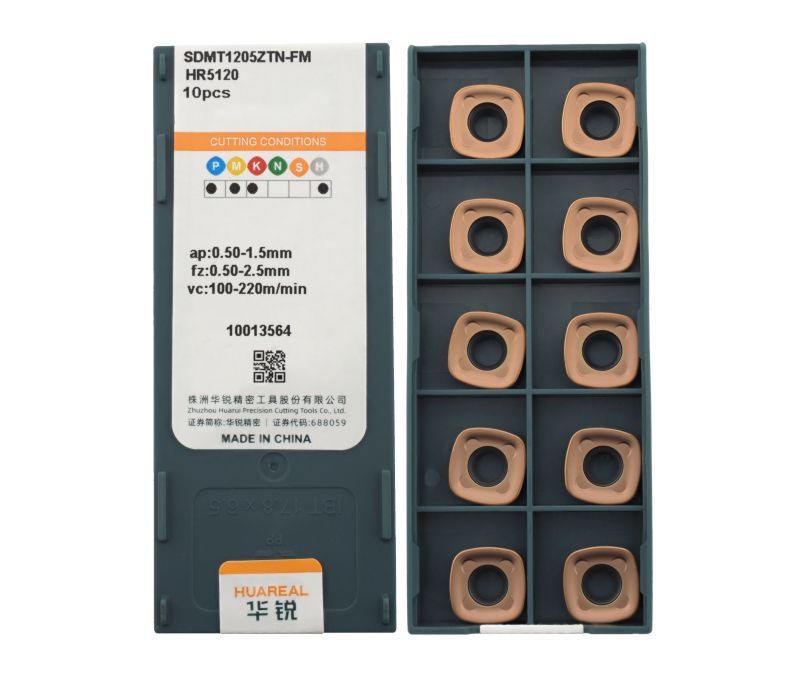 Фрезерная пластина SDMT1205ZTN-FM-HR5120 бренда Huareal применяется для обработки заготовок из стали, нержавеющей стали и чугуна.