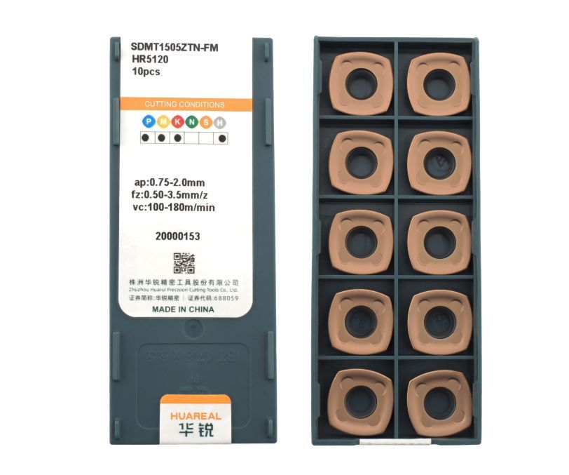Фрезерная пластина SDMT1505ZTN-FM-HR5120 бренда Huareal применяется для обработки заготовок из стали, нержавеющей стали и чугуна.