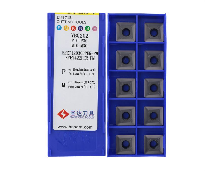 Фрезерная пластина SEET120308PER-PM-YBG202 бренда Sant применяется для обработки заготовок из стали, нержавеющей стали и чугуна.