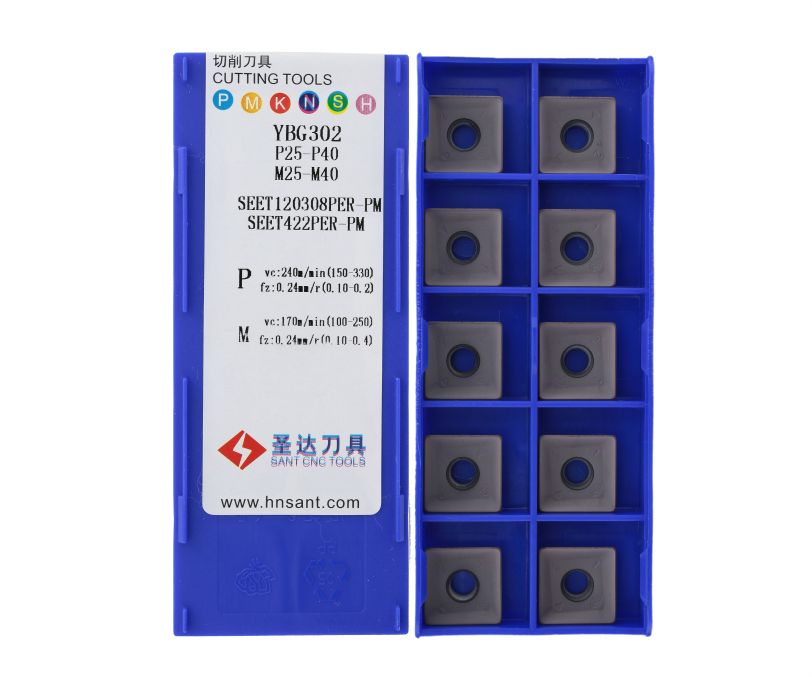 Фрезерная пластина SEET120308PER-PM-YBG302 бренда Sant применяется для обработки заготовок из стали и нержавеющей стали.