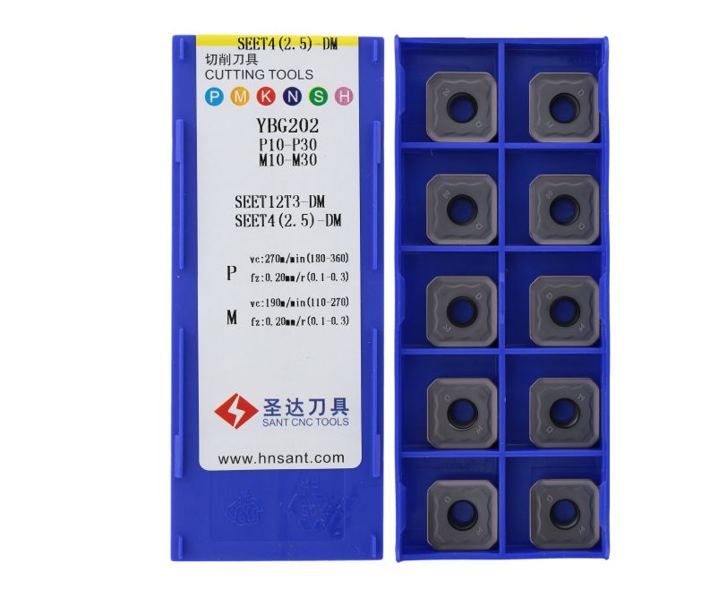 Фрезерная пластина SEET12T3-DM-YBG202 бренда Sant применяется для получистовой обработки заготовок из стали, нержавеющей стали и чугуна.