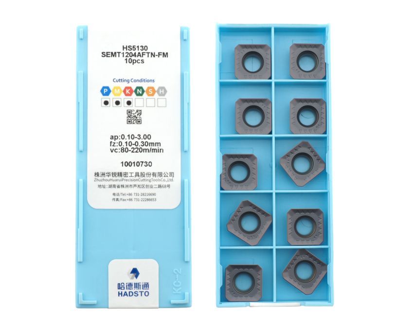 Фрезерная пластина SEMT1204AFTN-FM-HS5130 бренда HADSTO применяется для обработки заготовок из стали, нержавеющей стали и чугуна.