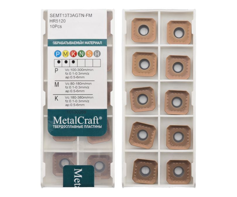 Фрезерная пластина SEMT13T3AGTN-FM-HR5120 бренда MetalCraft применяется для обработки заготовок из стали, нержавеющей стали и чугуна.