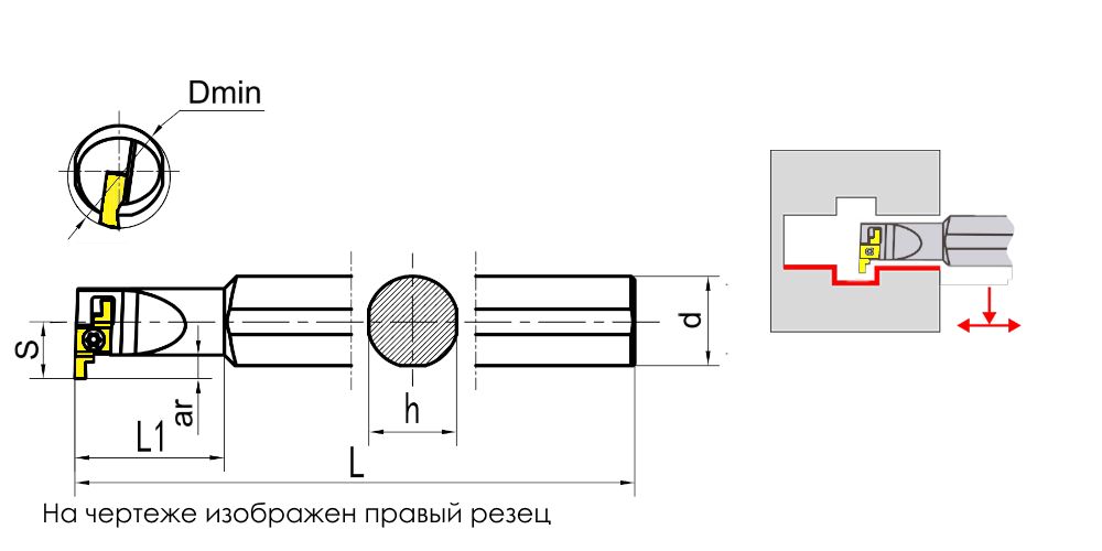 Резец токарный (державка) по металлу SIGER2020D-EH используется для обработки внутренних канавок. Исполнение державки - правое. Диаметр хвостовика 20 мм, общая длина 180 мм.