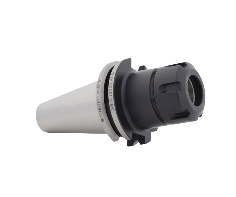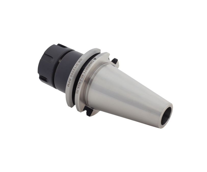 Фрезерный патрон SK40-ER25-070 (DIN 69871, ISO 7388/1) обеспечивает надежную фиксацию режущего инструмента с цилинидрическим хвостовиком в шпинделе станка и используется в сверлильных, фрезерных станках с ЧПУ, обрабатывающих центрах. Фиксация инструмента в корпусе патрона осуществляется при помощи зажимной цанги ER25 (DIN 6499) и гайки типа UM. В зависимости от размера отверстия цанги в патрон устанавливается инструмент с хвостовиком диаметром от 1 до 16 мм. Крепление оправки в шпинделе производится при помощи штревельного болта M16, который не входит в комплект поставки и приобретается дополнительно. Тип подачи СОЖ: АD (через центральное отверстие). Вылет патрона от шпинделя станка составляет 70 мм.