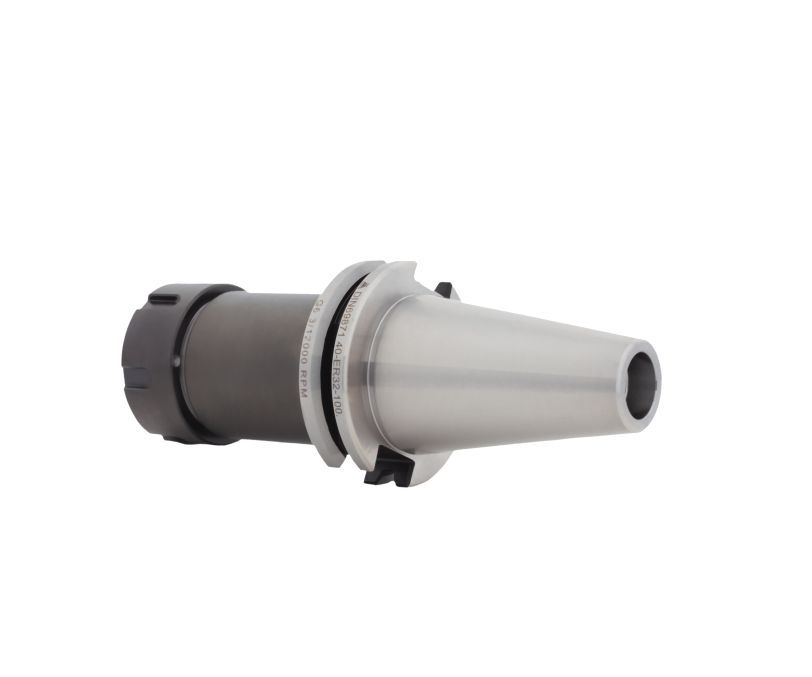 Фрезерный патрон SK40-ER32-100 (DIN 69871, ISO 7388/1) обеспечивает надежную фиксацию режущего инструмента с цилинидрическим хвостовиком в шпинделе станка и используется в сверлильных, фрезерных станках с ЧПУ, обрабатывающих центрах. Фиксация инструмента в корпусе патрона осуществляется при помощи зажимной цанги ER32 (DIN 6499) и гайки типа UM. В зависимости от размера отверстия цанги в патрон устанавливается инструмент с хвостовиком диаметром от 2 до 20 мм. Крепление оправки в шпинделе производится при помощи штревельного болта M16, который не входит в комплект поставки и приобретается дополнительно. Тип подачи СОЖ: АD (через центральное отверстие). Вылет патрона от шпинделя станка составляет 100 мм.