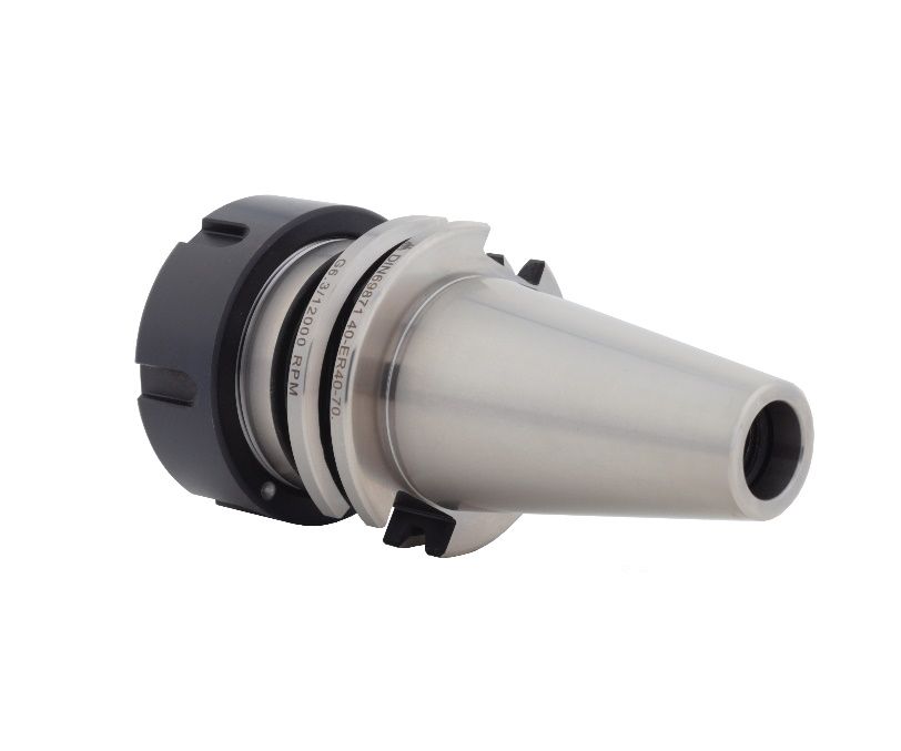 Фрезерный патрон SK40-ER40-070 (DIN 69871, ISO 7388/1) обеспечивает надежную фиксацию режущего инструмента с цилинидрическим хвостовиком в шпинделе станка и используется в сверлильных, фрезерных станках с ЧПУ, обрабатывающих центрах. Фиксация инструмента в корпусе патрона осуществляется при помощи зажимной цанги ER40 (DIN 6499) гайки типа UM. В зависимости от размера отверстия цанги в патрон устанавливается инструмент с хвостовиком диаметром от 3 до 26 мм. Крепление оправки в шпинделе производится при помощи штревельного болта M16, который не входит в комплект поставки и приобретается дополнительно. Тип подачи СОЖ: АD (через центральное отверстие). Вылет патрона от шпинделя станка составляет 70 мм.