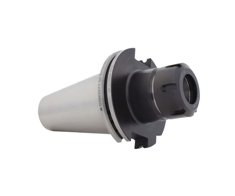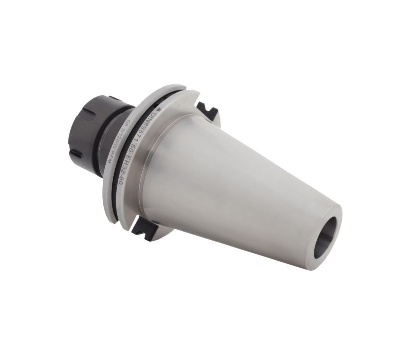 Фрезерный патрон SK50-ER32-080 (DIN 69871, ISO 7388/1) обеспечивает надежную фиксацию режущего инструмента с цилинидрическим хвостовиком в шпинделе станка и используется в сверлильных, фрезерных станках с ЧПУ, обрабатывающих центрах. Фиксация инструмента в корпусе патрона осуществляется при помощи зажимной цанги ER32 (DIN 6499) и гайки типа UM. В зависимости от размера отверстия цанги в патрон устанавливается инструмент с хвостовиком диаметром от 2 до 20 мм. Крепление оправки в шпинделе производится при помощи штревельного болта M24, который не входит в комплект поставки и приобретается дополнительно. Тип подачи СОЖ: АD (через центральное отверстие). Вылет патрона от шпинделя станка составляет 80 мм.