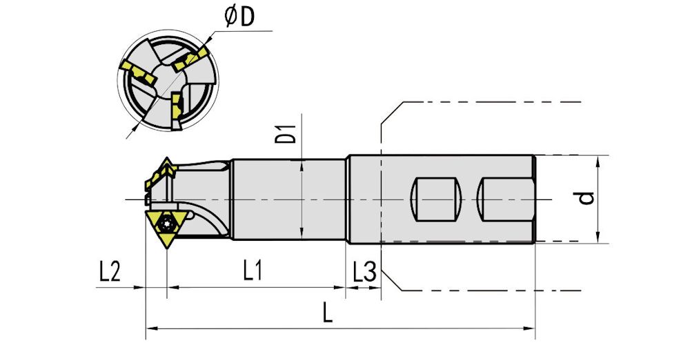 Концевая резьбофреза SMT31-32M11U-4 применяется для изготовления наружной и внутренней резьбы. Диаметр фрезы 29 мм, минимальный диаметр фрезерования 23 мм. Тип хвостовика - Weldon, диаметр 25 мм. Устанавливаемая пластина 11UI**.