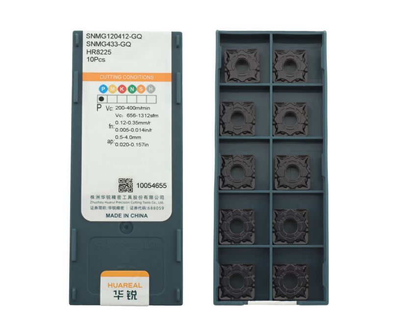 Твердосплавная сменная пластина SNMG120412-GQ-HR8225 бренда Huareal применяется для получистовой обработки заготовок из стали.