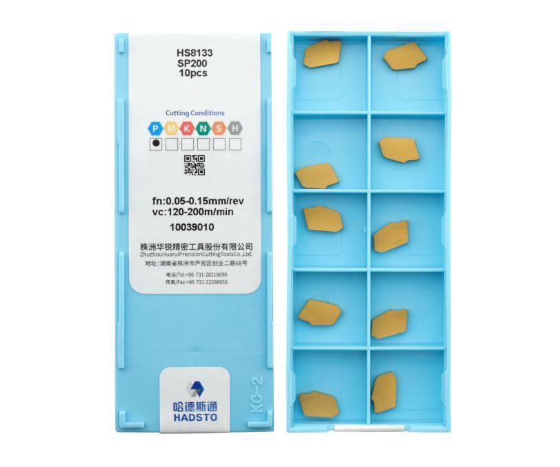 Твердосплавная сменная пластина SP200-HS8133 используется для отрезки и обработки канавок. Тип обрабатываемого материала - сталь. Ширина пластины 2 мм. Радиус при вершине 0,2 мм. Область применения: • Державки отрезные/канавочные ZQ • Отрезные лезвия SPB