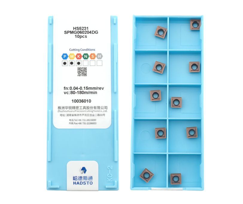 Твердосплавная сменная пластина SPMG060204DG-HS5231 (HADSTO) используется для сверления отверстий в заготовках из различных материалов. Защитное покрытие HS5231 позволяет эффективно обрабатывать сталь, нержавеющую сталь и чугун. Форма пластины S (квадрат), длина режущей кромки 6 мм, задний угол 14°.